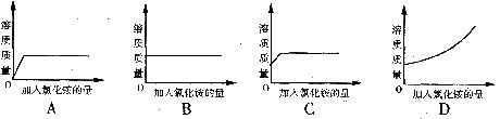 10.向一瓶接近饱和的氯化铵溶液中,逐渐加入氯化铵晶体,下列图像符合溶液中溶质质量变化规律的是 ( )