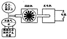 C.风力、水力潮汐力、水蒸气带动涡轮机转动
