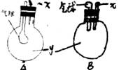 14、有下图所示装置,烧瓶内均有物质y(固体、液体或气体),胶头滴管内有物质x(液体),则要使A、B装置中气球胀大,物质组合可以是(写物质名称):
