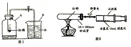 ③将少量红磷平装入试管中,将20mL的注射器活塞置于10mL刻度处,并按图Ⅱ中所示的连接方式固定好,再将弹簧夹紧橡皮管。