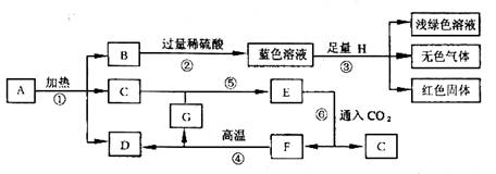 21、(6分)已知A-G七种物质都是初中化学课本中出现过的化合物,其中F是常用的建筑材料;H为常见的单质。各物质之间存在如下转化关系(反应条件如下图所示)。