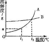 (2)t2℃时,A、B两种物质的溶解度 (填“相同”或“不同”)
