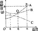 28、如下图所示是A、B、C三种物质的溶解度曲线,请回答: