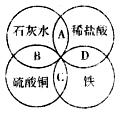 18.铁、盐酸、石灰水、硫酸铜是初中化学中常见的物质,四种物质间的反应关系如图,图中两圆相交部分(A、B、C、D)表示物质反应的主要现象,其中描述正确的是