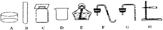 (1)仪器E的名称是____________,使用该仪器时应当注意(写一条即可):____________,可以用它直接加热的仪器是(填序号) ____________。