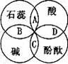 10.王宏在学习酸碱指示剂与常见酸、碱溶液作用时,归纳成如下图所示的关系。图中A、B、C、D是两圆相交的部分,分别表示指示剂与酸、碱溶液作用时所显示出的颜色,则其中表示不正确的是( )