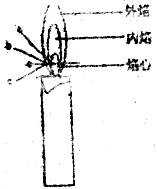 (2)如图,点燃蜡烛,观察到蜡烛火焰分为外焰、内焰、焰心三层。取一根火柴梗放在蜡烛的火焰中,约1s后最出,可以看到火柴梗的___________处最先炭化。结论:蜡烛火焰的________部分温度最高。