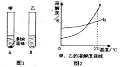 (2)上图2中表示甲物质的溶解度曲线的是 (填“a”或“b”)