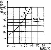 ⑵t℃时,将mg KNO3 、ng NaCl 分别溶解在20mL水中恰好饱和,则m____n(填“>”、“<”或“=”)。