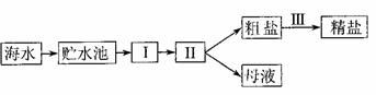 ⑶工业上采用如下的流程从海水中提取精盐: