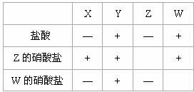14.X、Y、Z、W是四种不同的金属,为比较金属活动性的大小,某同学利用这四种金属单质、盐酸、Z的硝酸盐、W的硝酸盐,进行有关实验,结果如下表(能反应的记为“+”,不能反应的记为“-”,无标记的表示未做该实验)。这四种金属的活动性顺序为
