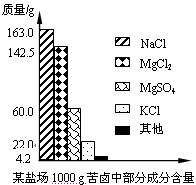 30.(6分)海洋约占地球表面积的71%,具有十分巨大的开发潜力。苦卤是海水提取食盐后的残液,利用苦卤可以制得金属镁等化工原料。下图是我市某盐场苦卤中部分成分含量柱形图。试计算: