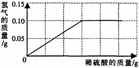 24.(6分)为了测定黄铜(铜、锌合金)的组成,某研究性学习小组称取该样品10g,向其中逐滴加入9.8%的稀硫酸至刚好不再产生气体为止。反应过程中生成的气体与所用硫酸溶液的质量关系如右图所示。试计算: