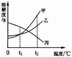 12.如图是甲、乙、丙三种物质的溶解度曲线,将甲、乙、丙三种物质t2℃时的饱和溶液降温至t1℃,所得溶液的溶质质量分数关系正确的是
