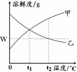 8.下图是甲、乙两种物质的溶解度曲线。在t2℃时往盛有100g水的烧杯中先后加入wg甲和wg乙(两种物质溶解时互不影响,且溶质仍是甲、乙),充分搅拌。将混合物的温度降低到t1℃。下列说法正确的是