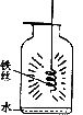 22.(2分)右图是铁在氧气燃烧的实验装置图,集气瓶中加入水的作用是 ;铁丝绕成螺旋状的目的是 。