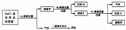 37.(5分)为验证并除去NaCl晶体中含有少量的Na2CO3和Na2SO4两种杂质,现设计了如下实验方案(通过查阅相关资料得知:若两种盐溶液混合,有沉淀产生,则该复分解反应可以发生)。