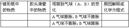 39.(6分)某兴趣小组设计的趣味小实验装置如下图所示,其中A、B为未膨胀的气球,C为胶头滴管。用气密性良好的该装置分别进行以下各实验,实验时把胶头滴管中的溶液(足量)加入到锥形瓶中,并轻轻振荡。