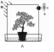 充足的条件下,经过一段时间后,该小组同学用注射器从a处抽取气体,测定玻璃罩内气体的成分及其含量。
