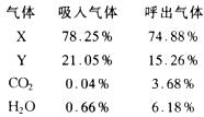 (4)请你分析:X气体在呼吸过程中没有参与化学反应,但呼出气体中体积分数却减少了,原因是: 。
