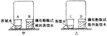 实验1:在盛有少量蒸馏水的小烧杯中滴入2-3滴酚酞试液,再向其中加浓氮水。由实验1得出的结论有______________________________________________________。