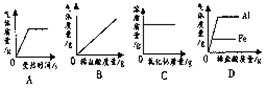 D.分别向等质量的铝和铁中加入溶质质量分数相同的稀盐酸至过量