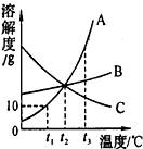 (1)欲使t1℃时C物质的不饱和溶液变为饱和溶液可________温度(填“升高”或“降低”);