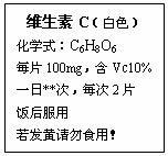 ②当“VC”完全来自某种新鲜蔬菜(每1000g这种蔬菜含“VC”120mg),则每天至少应食用这种蔬菜 g。
