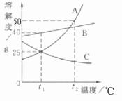 24.(5分)右图为A、B、C三种固体物质的溶解度曲线,根据曲线回答下列问题: