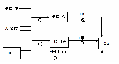 27.(5分)甲、乙、丙是三种单质,其中乙是气体,A、B、C是三种化合物,它们之间有下列转化关系: