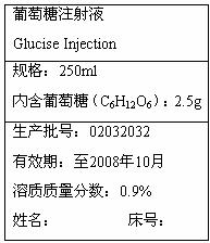 24.(8分)下图是病人输液时用的一瓶葡萄糖注射液标签,请根据标签所给的信息计算: