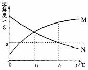 D.温度降低到t1℃时,M、N的溶解度相等,得到M、N的饱和溶液
