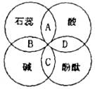 20.小李在学习酸碱指示剂与常见酸、碱溶液作用时,归纳成如下图所示的关系。图中A、B、C、D是两圆相交的部分,分别表示指示剂与酸、碱溶液作用时所显示出的颜色,则其中表示不平磅的是