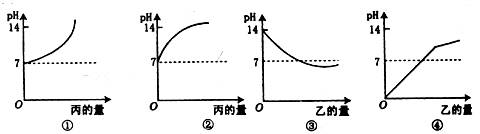 C.图③表示丙中滴入乙 D.图④表示甲中滴入乙