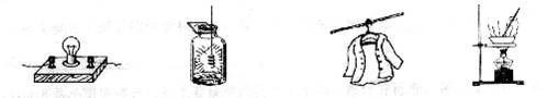 A.灯泡通电发光 B.铁丝在氧气中燃烧 C.湿衣晾干 D.食盐水的蒸发