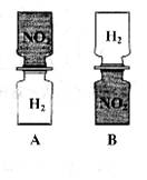 13.把分别充满红棕色二氧化氮(NO2)气体和氢气的集气瓶按下图A、B两种方式放置,然后把两瓶中间的玻璃片抽走,使瓶口密合在一起(不用振荡),可观察到A中两瓶气体的颜色很快趋于一致(两气体不反应),而B中需要很长时间才能达到同样的效果。由此现象不能得出的结论是