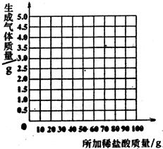 (3)根据实验数据,在下边的坐标纸上绘制出所加稀盐酸质量与生成气体质量关系的曲线。(不要求列计算过程,只画出曲线即可)