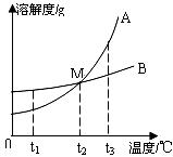 16. (3分)下图是A、B两种物质的溶解度曲线,回答下列问题: