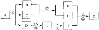 20.(10分) A是绿色粉末,G是蓝色溶液,X为常见的稀酸,B、C、D、E、F、H和Y中初中化学常见的物质。它们之间转化关系如下图所示,反应①、②、③、④和⑤是初中化学常见的反应。