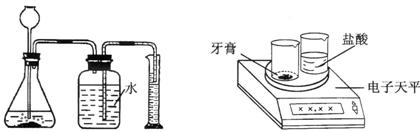 方案二:将一定量的牙膏与过量的盐酸反应,用图1所示装置(装置的气密性良好),测量二氧化碳气体的体积(锥形瓶中液面高度变化忽略不计),利用该条件下二氧化碳的密度,计算二氧化碳的质量,然后根据化学方程式求出碳酸钙的质量,再计算出碳酸钙的质量分数。
