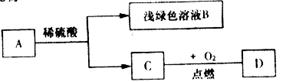 (1)写出A、C、D三种物质的化学式:A. 、C. 、D. ,浅绿色溶液B中溶质的化学式 。