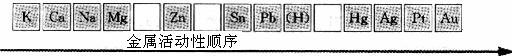 (1)请在上述金属活动性顺序表的空格中填上小红同学所贴卡片上的元素符号。