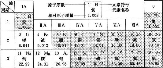 19.(6分)下图是元素周期表中的一部分。在元素周期表中,同一周期(横行)中的元素,除0族(最右纵行)元素外,从左到右原子序数依次增多,原子半径逐渐减小,在化学反应中,原子失电子能力逐渐减弱,得电子能力逐渐增强。请回答: