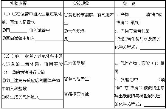 [设计实验] (1)过氧化钠与水反应; (2)过氧化钠与二氧化碳反应。