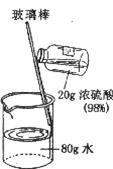 (2)将20g98%的浓硫酸注入80g水中,形成的稀硫酸的质量为 g,其中溶质的质量分数为 。