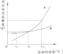 (1)t1℃时,向两只盛有100g水的烧杯中,分别加入A、B两种物质至不能溶解为止,所得溶液的溶质质量分数较大的是___________溶液(填“A”或“B””)。