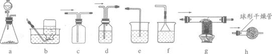(2)实验室用CO和H2的混合气体还原Fe2O3时,可选用_____________装置;若要设计一套连续装置,检验并吸收反应后的气态产物(100℃以上),合理的操作顺序是:先通过装有_________的装置,后通过装有__________的装置,再通过装有_________的h装置;剩余气体不能直接排放到空气中,应采取的措施是____________________。