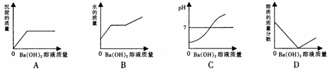 15、向装有50g稀硫酸的小烧杯中,不断慢慢滴加10%的Ba(OH)2溶液至过量。有关量的变化情况见下图(横坐标表示氢氧化钡溶液的质量,纵坐标表示小烧杯中量的变化)。其中肯定不正确的是