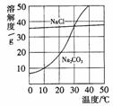 19.(3分)下图为氯化钠、碳酸钠(俗称纯碱)在水中的溶解度曲线。