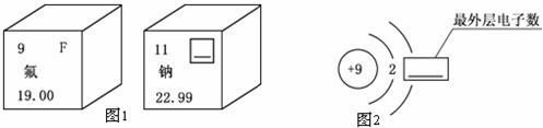 16.(6分) 图1是两种元素在元素周期表中的信息,图2是氟原子的原子结构示意图。